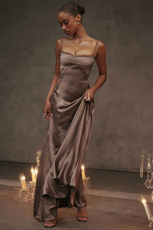 Vestido Longo Para Festas Cinza Cativante Modelo Naples