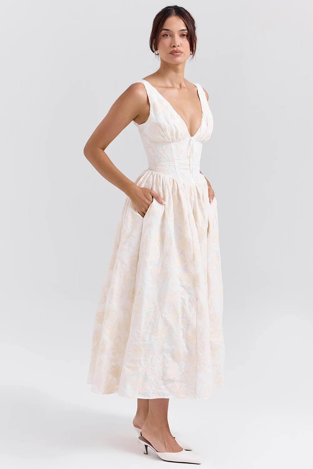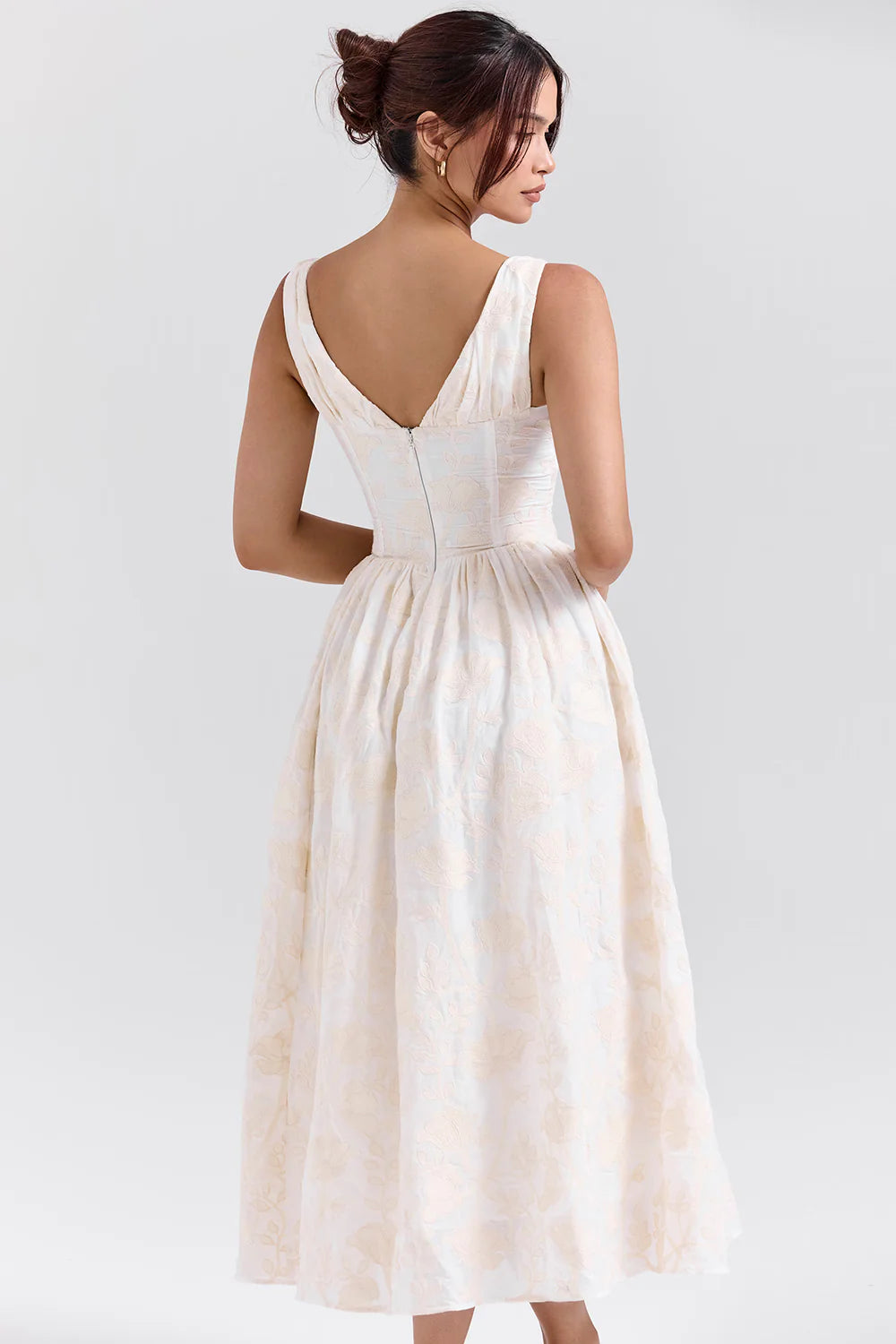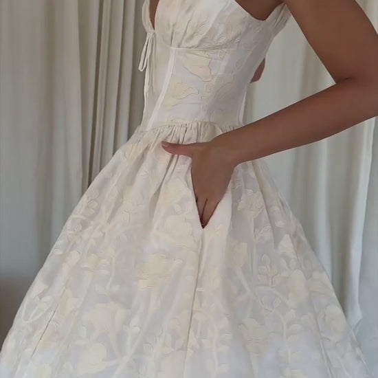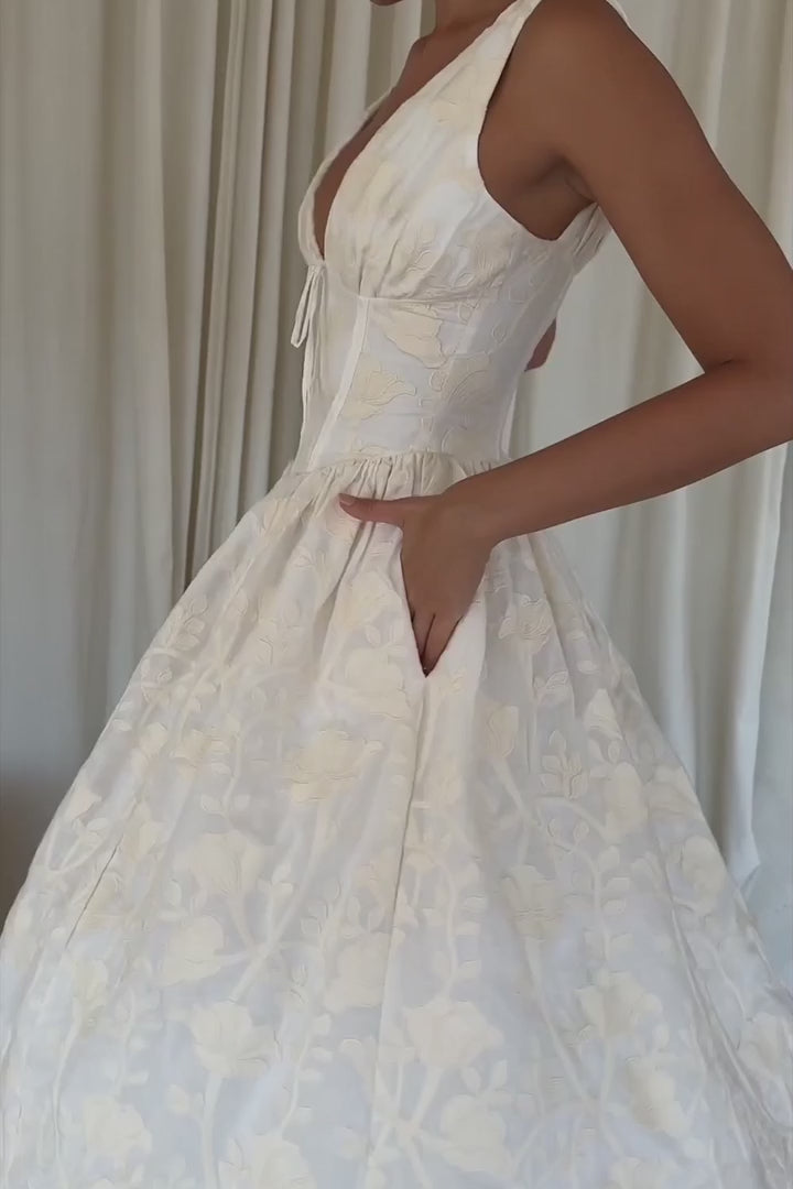 O Vestido Marano em sua cor branco neve se destaca em qualquer lugar que você o usar, graças ao seu lindo molde italiano e seu estilo Vintage.