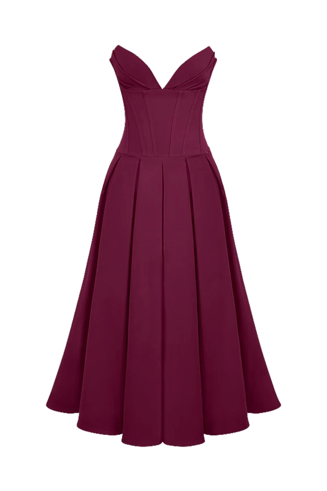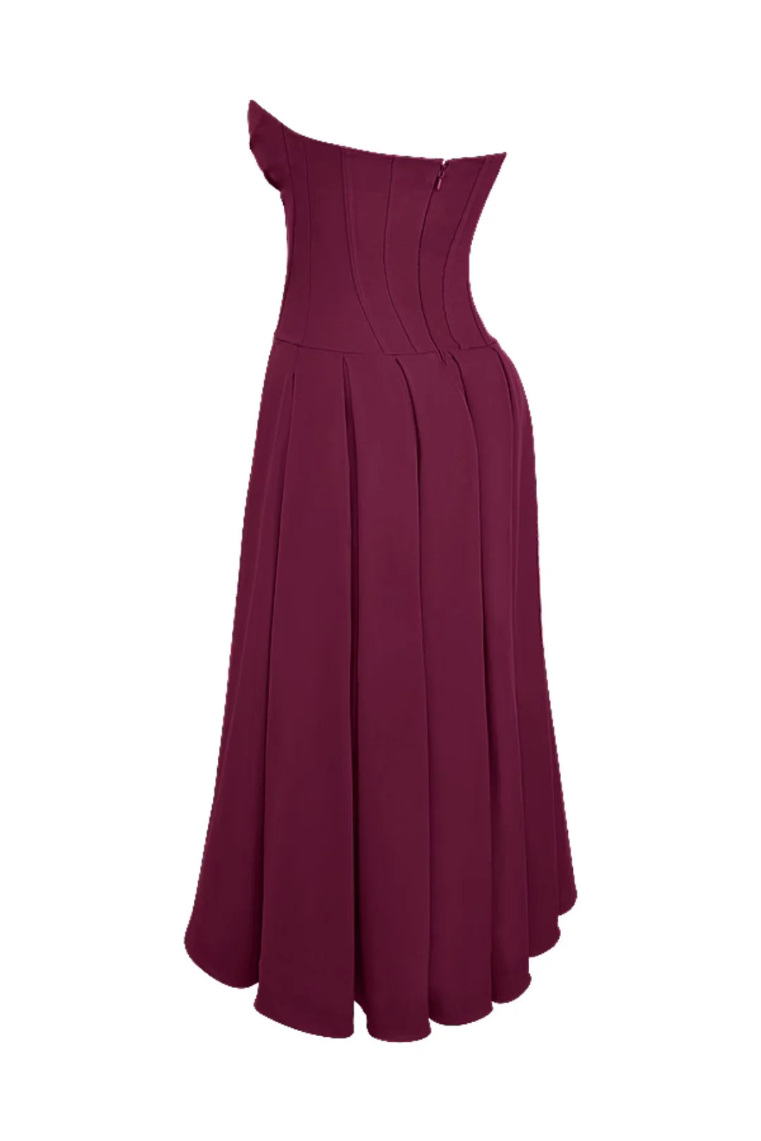 Vestido Midi Modelador Vinho Sem Alça Modelo Reno