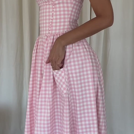 Conteúdo da embalagem: 1x Vestido Midi Rosa Xadrez Biassono