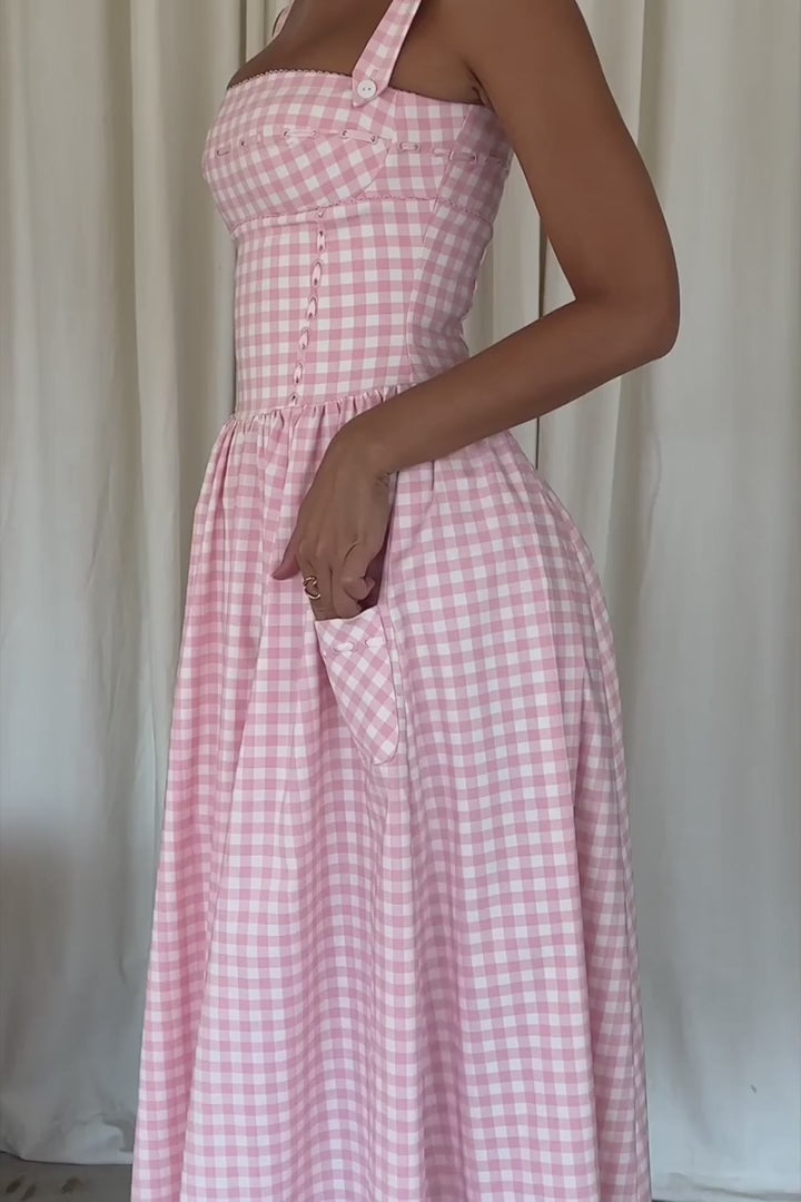 Vestido Midi Rosa Xadrez Biassono